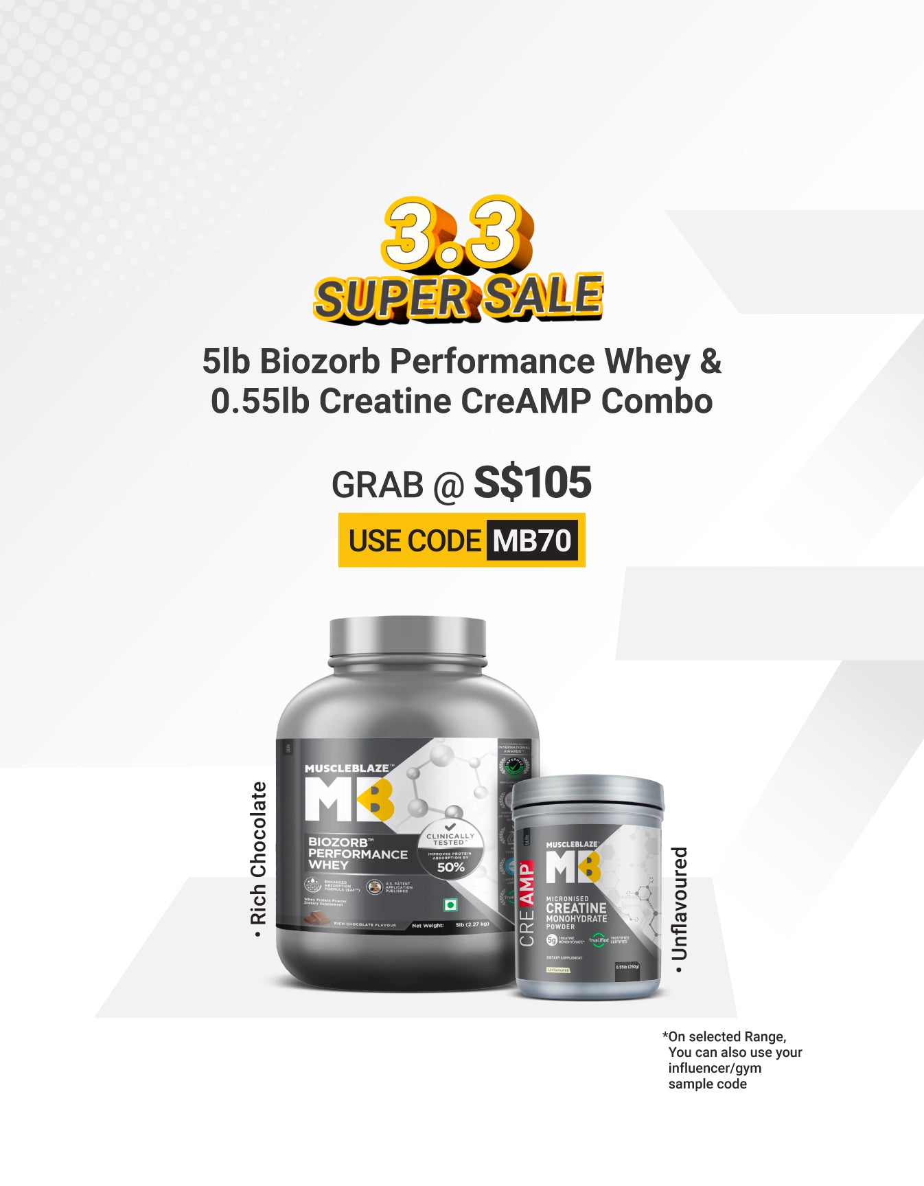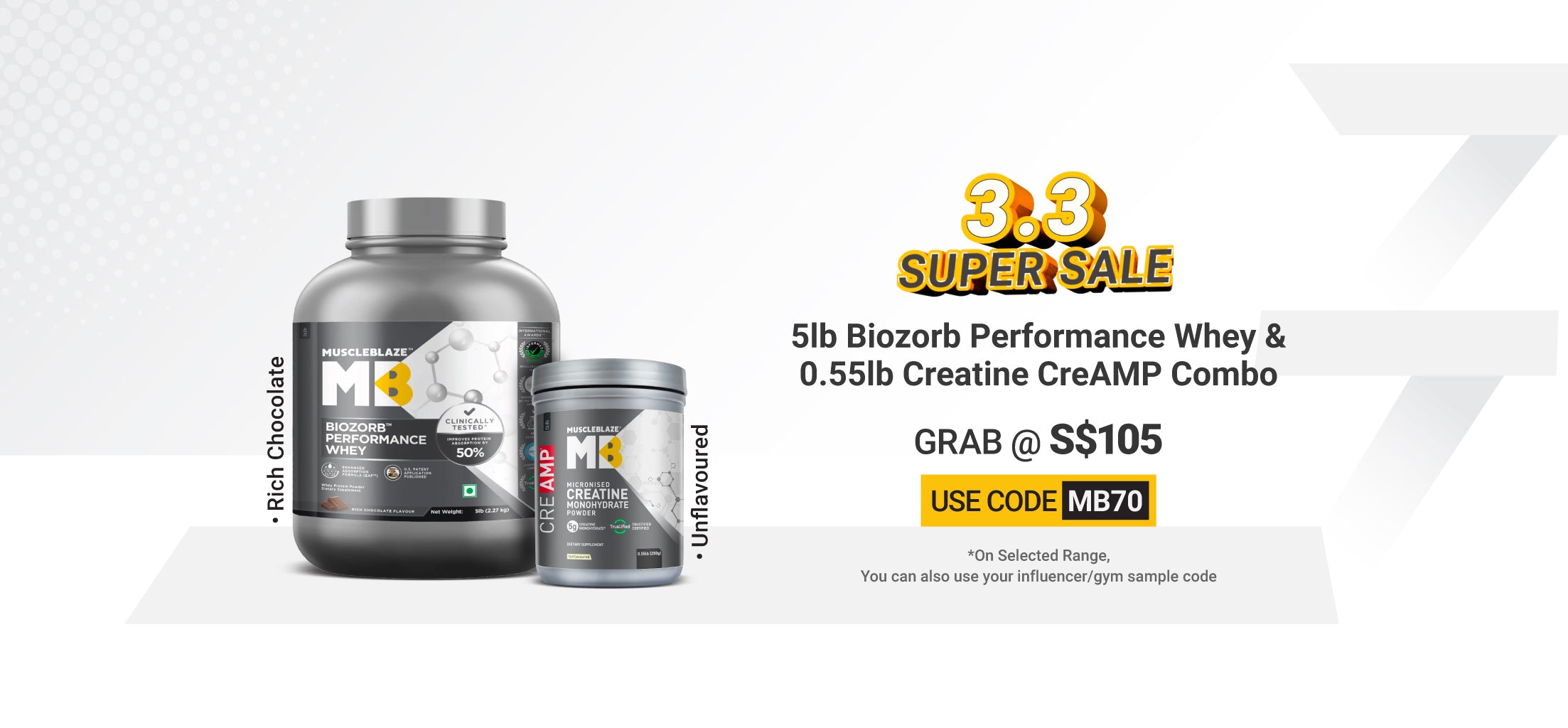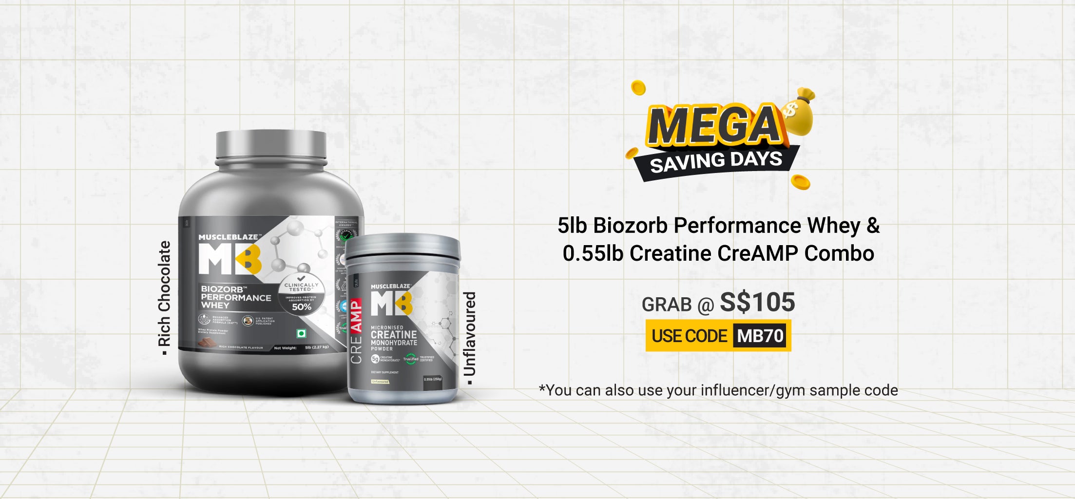 Biozorb Performance Whey 2 lb Rich Chocolate and Creatine Monohydrate CreAMP 0.55 lb Unflavoured Combo